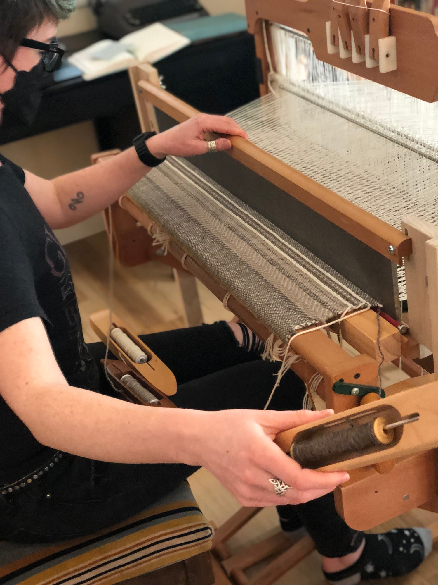 We provide opportunities for creative work that is flexible and accommodating. Weaving provides a tangible connection to the land and animals that grow the fiber. The artisans behind Grazed & Woven are supported by Emily Robinson in learning new skills and exploring their creativity with wool as the medium. By providing looms and training to new artisans, Grazed & Woven products come to life.